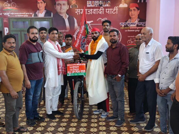 सपा नेता राजकुमार “राजू” ने अपने आवास पर किया प्रदेश की यात्रा पर निकले समाजवादी साईकिल यात्री का स्वागत