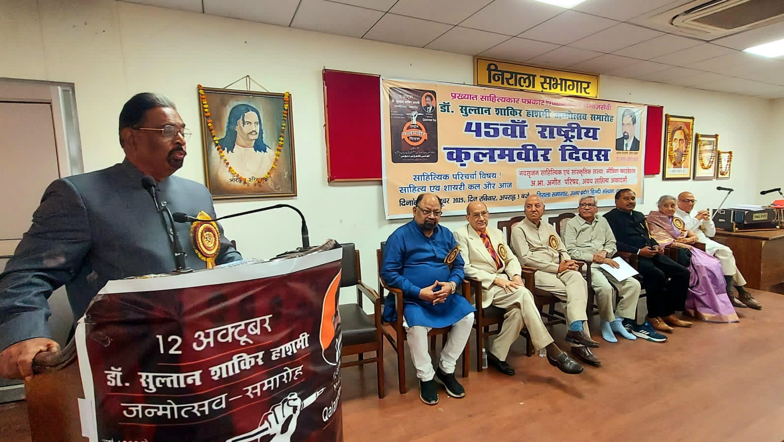 लाइव सत्यकाम न्यूज, लखनऊ : 45वें राष्ट्रीय कलमवीर दिवस समारोह का आयोजन आज सम्पन्न हुआ।नवसृजन साहित्यिक एवं सास्कृतिक संस्था,अखिल भारतीय अगीत परिषद,अवध साहित्य अकादमी एवं मीडिया फाउण्डेशन के संयुक्त तत्वावधान में विभिन्न भाषाओं में 60 से अधिक महत्वपूर्ण पुस्तकों के लेखक,वरिष्ठ साहित्यकार,पत्रकार एवं शिक्षाविद डॉ. सुल्तान शाकिर हाशमी के जन्मोत्सव के अवसर पर ‘राष्ट्रीय कलमवीर दिवस का आयोजन आज, निराला सभागार,उत्तर प्रदेश हिन्दी संस्थान में प्रोफेसर डॉ. वी जी गोस्वामी (पूर्व अधिष्ठाता विधि संकाय लखनऊ विश्वविद्यालय) की अध्यक्षता में सम्पन्न हुआ।