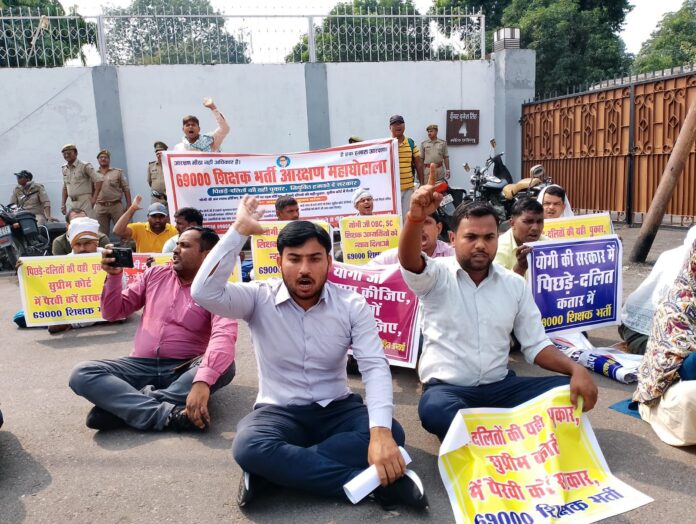 आरक्षण पीड़ित अभ्यर्थी जगबीर सिंह चौधरी तथा राजन जायसवाल का कहना है की 69000 सहायक शिक्षक भर्ती में ओबीसी वर्ग को 27% की जगह 3.86% तथा एससी वर्ग को 21% की जगह 162% आरक्षण दिया गया है और इस प्रकार इस भर्ती में बेसिक शिक्षा नियमावली 1981 तथा आरक्षण नियमावली 1994 का घोर उल्लंघन करके आरक्षित वर्ग की 19000 सीटों पर आरक्षण का घोटाला किया गया है और यह घोटाला लखनऊ डबल बेंच ने 13 अगस्त 2024 को आदेश देकर सार्वजनिक कर दिया जिसमें उसने कहा कि आरक्षण के नियमों का पालन करते हुए 69000 सहायक शिक्षक भर्ती की लिस्ट को मूल चयन सूची के रूप में दोबारा बनाई जाए लेकिन उत्तर प्रदेश सरकार ने ना तो लखनऊ डबल बेंच के आदेश को माना और ना ही वर्ष 2020 से कोर्ट में यांची बनकर न्याय की लड़ाई लड़ रहे आरक्षण पीड़ित अभ्यर्थियों को याची लाभ देकर यह मामला निस्तारित किया जाए इसके लिए कोई कार्य किया ।