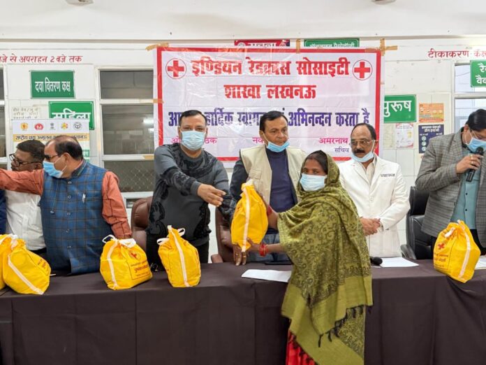 लाइव सत्यकाम न्यूज, लखनऊ : अक्टूबर माह में इंडियन रेड क्रॉस सोसाइटी द्वारा गोद लिए गए टीबी मरीजों को आज दूसरे महीने की पुष्टाहार पोटली का वितरण किया गया। यह वितरण कार्यक्रम डिप्टी सीएमओ एवं इंडियन रेड क्रॉस सोसाइटी शाखा लखनऊ के सचिव अमरनाथ मिश्र के नेतृत्व में टीबी हॉस्पिटल, ठाकुरगंज में सम्पन्न हुआ। कार्यक्रम के दौरान कुल 42 टीबी मरीजों को पुष्टाहार पोटली प्रदान की गई।