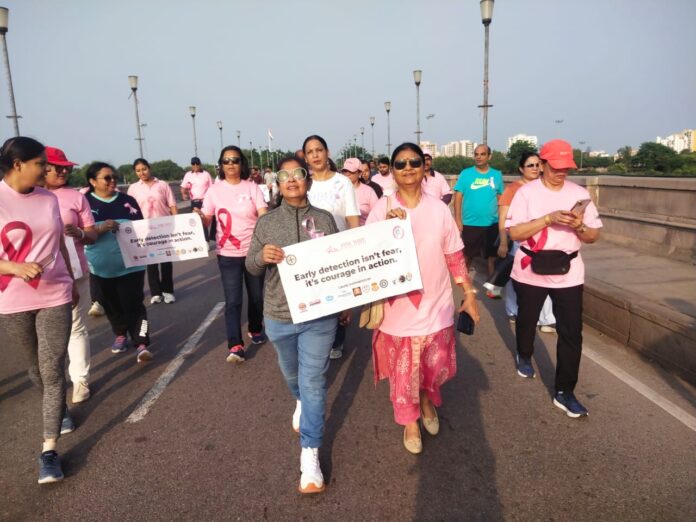 लाइव सत्यकाम न्यूज,लखनऊ : ब्रेस्ट कैंसर जागरूकता माह के तहत आज राजधानी लखनऊ के परिवर्तन स्थल से परिवर्तन चौक तक वॉकाथन का आयोजन किया गया। इस कार्यक्रम का उद्देश्य महिलाओं में ब्रेस्ट कैंसर के प्रति जागरूकता फैलाना और समय पर जांच व उपचार के महत्व को उजागर करना था।